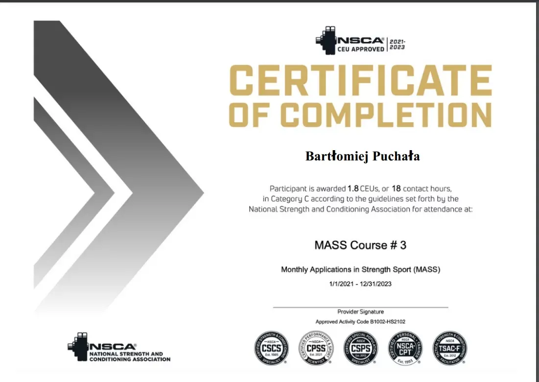 Poświęciłem setki godzin na zgłębianie wszelkich tajników związanych z hipertrofią tkanki mięśniowej i periodyzacją treningów, ukończyłem również kurs trenera personalnego (aczkolwiek nie uważam tego jako dobry wyznacznik wiedzy w obecnych czasach), co pozwoliło mi na zbudowanie znacznej ilości tkanki mięśniowej