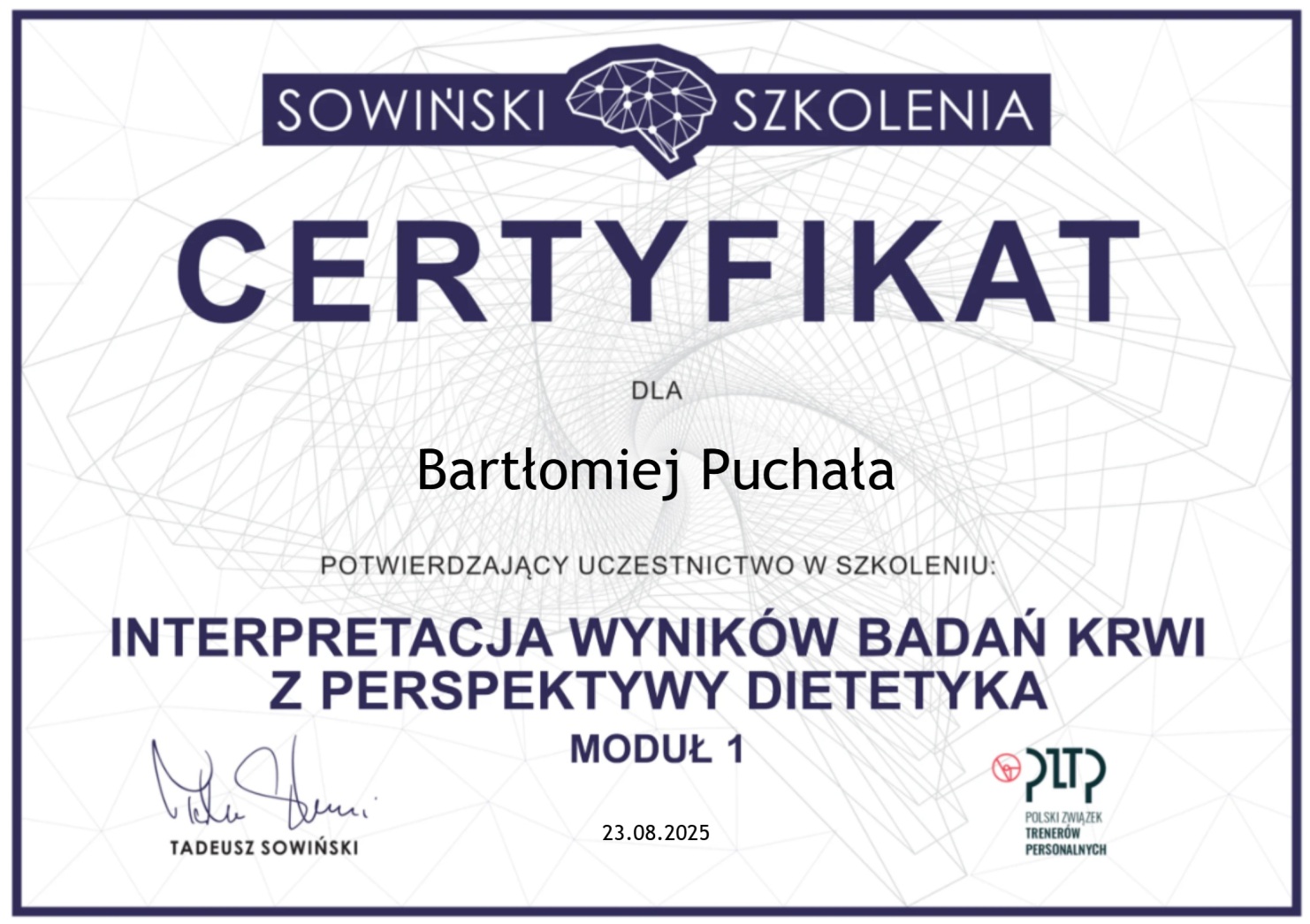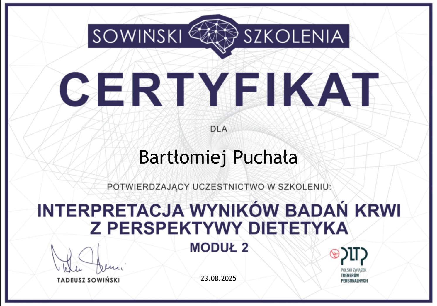 – Interpretacja wyników badań krwi z perspektywy dietetyka Moduł 1 – 5.08.2025 Tadeusz Sowiński